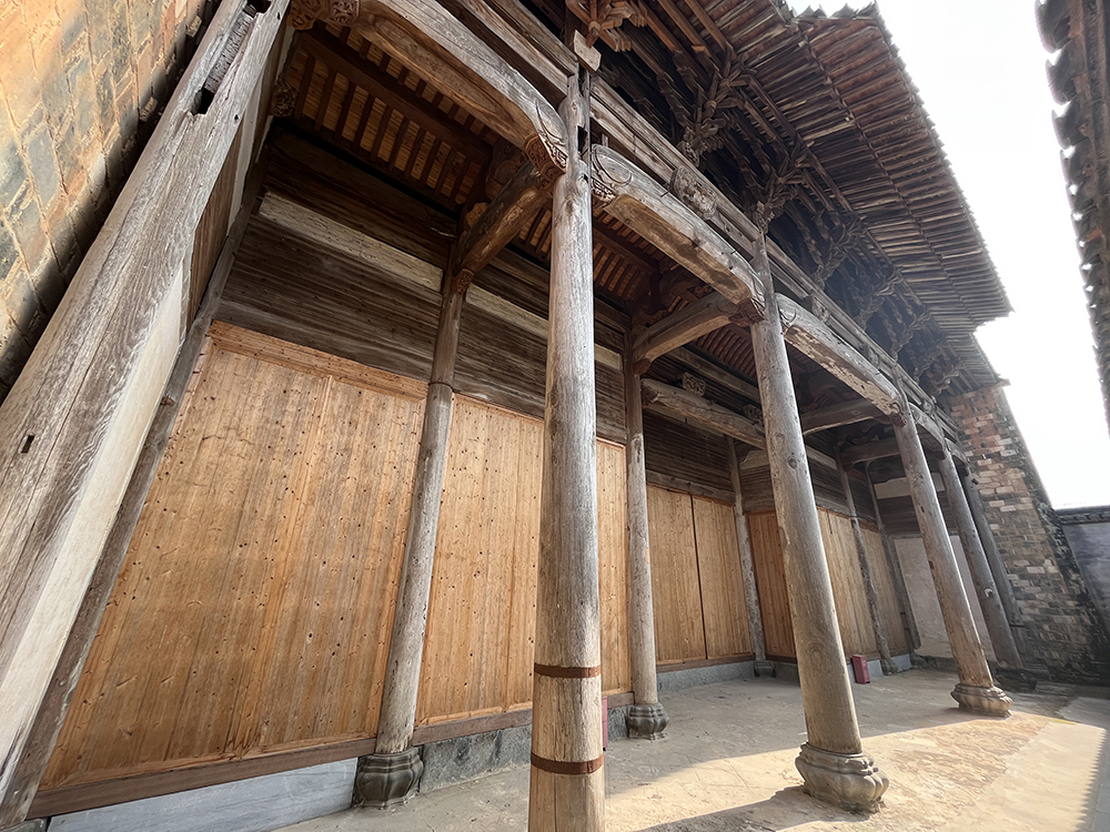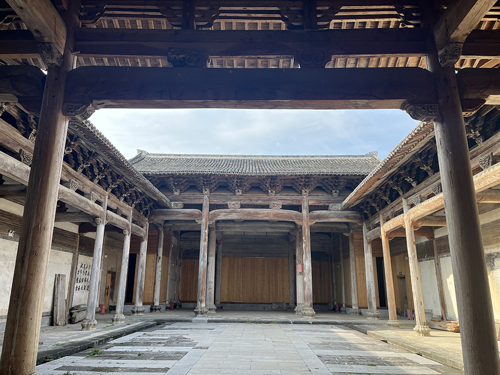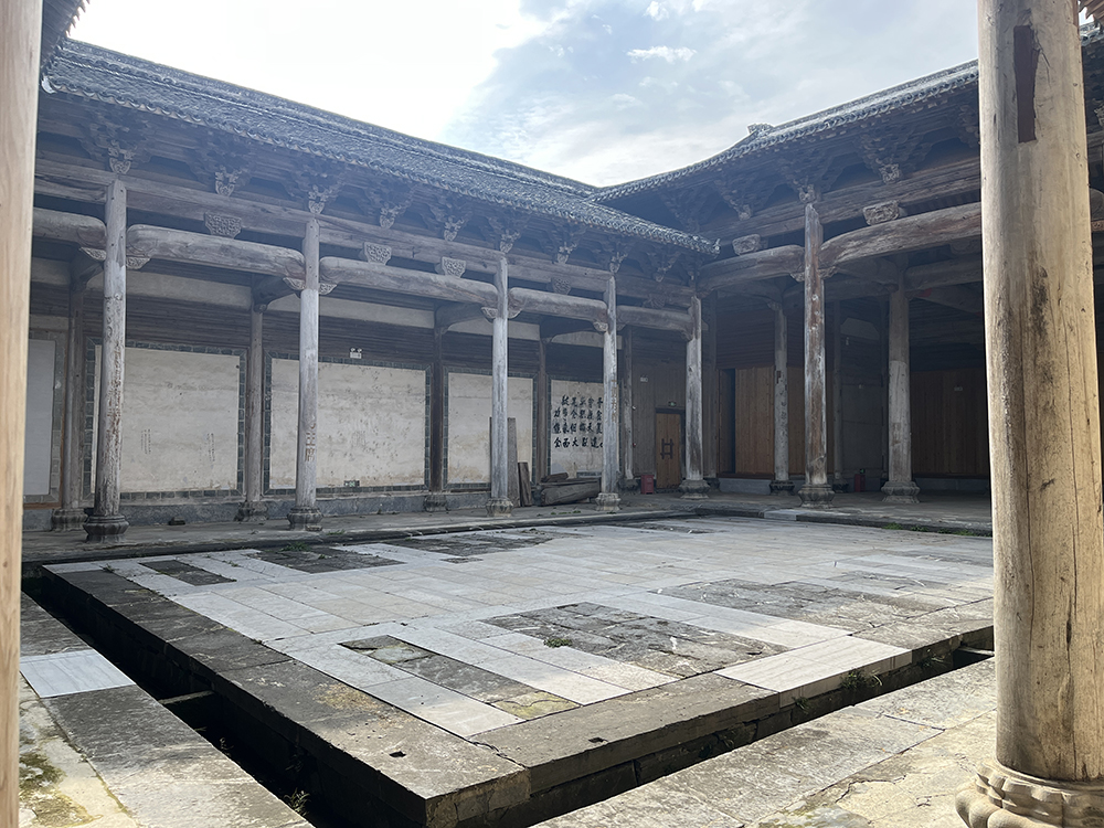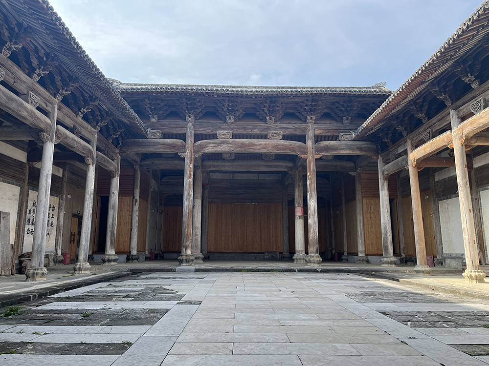 黟縣碧山汪氏世祠位于安徽省黟縣碧陽鎮(zhèn)碧山村,始建于清代,座西北朝東南,其開間19.55米,進(jìn)深42.86米,建筑占地面積837.90平方米。該祠堂為木構(gòu)架承重,中青瓦屋面,三開磚空斗墻圍護(hù),五開間二進(jìn)一門屋兩廊建筑,天井地坪石為黟縣青石板,大門口有2根碩大的黟縣青石柱,斗拱鋪?zhàn)?,門屋五鳳樓氣勢(shì)較為宏大,頗為壯觀。修繕工程注重傳承及保護(hù)地方傳統(tǒng)工藝和做法,盡可能真實(shí)完整地保存祠堂的歷史風(fēng)貌和建筑特征。