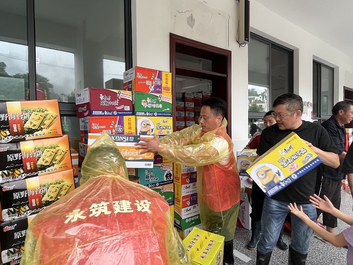 6月27日,永筑建設公司總經理汪劍龍帶領黨員干部志愿者,分別前往歙縣紹濂鄉(xiāng)嶺口村和屯溪區(qū)奕棋鎮(zhèn)占川村,為當?shù)卮逦褪転娜罕娋栀洿竺?、礦泉水、方便面、餅干、雨靴雨衣等急缺的生活物資共計300件。大家到達受災一線,顧不得大雨滂沱,立即投入工作,快速完成物資搬運,充分發(fā)揮了黨員的先鋒模范作用,以實際行動履行企業(yè)的社會責任。